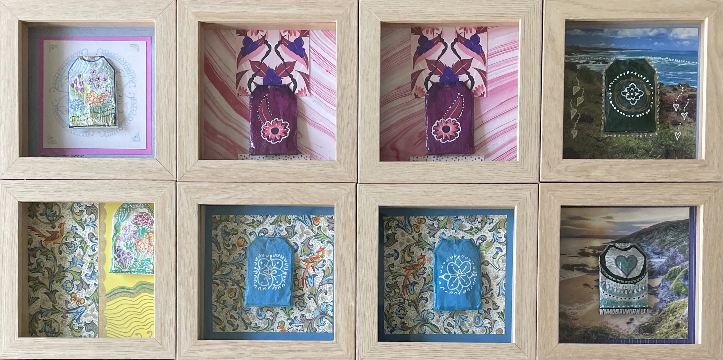 There are 50+ pieces of my Tea Bag Art Collages on display & for sale.