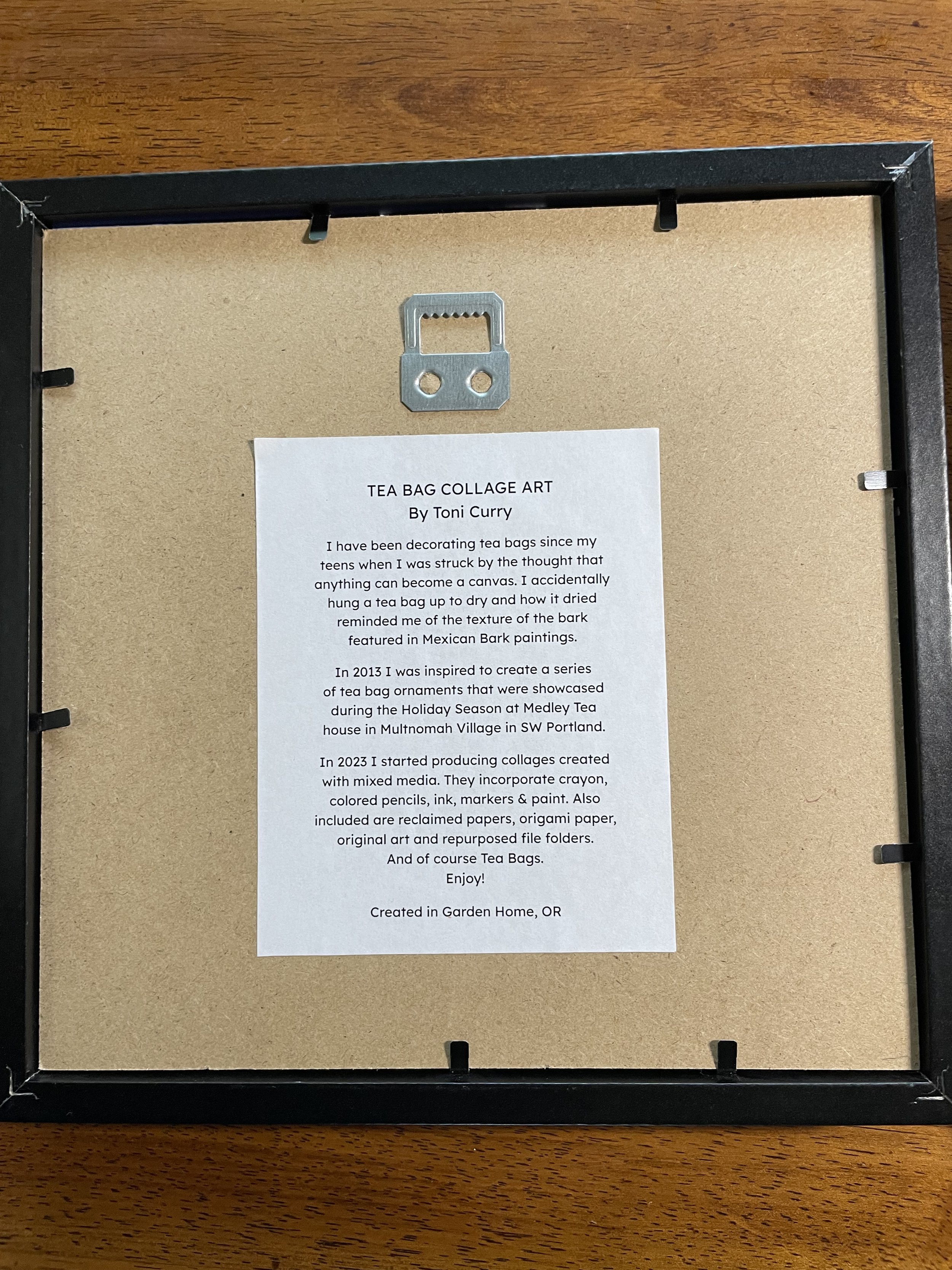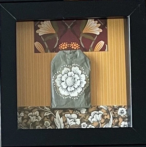 Store 5" x 5' Collage - Fall Floral (Gigi's Cafe in Hillsdale) $40.00 5"x 5" Collage - "Floral Classic" (At Gigi's Cafe in Hillsdale, OR) $36.00 5"x 5" Collage - "Modern" At Gigi's Cafe in Hillsdale, OR) $36.00 5"x 5" Collage - Set of 2 "Pretty in Pink" At Gigi's Cafe in Hillsdale, OR) $72.00 8"x 8" Collage "Elegance" Set of 2 (At Gigi's Cafe in Hillsdale, OR) $112.00 8" x 8" Collage - "Orientation" (At Tah-Lume Gift Shop In Lincoln City, OR) $56.00 Sold out 8"x 8" Tea Bag Collage "Come what May" (At Gigi's Cafe in Hillsdale, OR) $56.00 8"x 8" Collage "Neighborhood" $56.00 8"x 8" Collage "Friendship Tea " (At Gigi's Cafe in Hillsdale, OR) $56.00 5" x 5" Collage "Orginial" (At Gigi's Cafe in Hillsdale, OR) $36.00 5" x 7" Collage "Oregon Grape " $36.00 Sold out 5" x 7" Collage "Oregon Grape " $36.00 Sold out 5" x 5" Collage "Yellow Floral" (At Gigi's Cafe in Hillsdale, OR) $36.00 Sold out 5" x 5" Collage "Blue Spring Series" At Gigi's Cafe in Hillsdale, OR $36.00 5" x 5" Collage " Earth Series" (At Insomnia Coffee in Hillsboro) $40.00 5" x 5" Collage "Red Series" (At Insomnia Coffee in Hillsboro) $40.00 Green Motif - 4 pack of horizontal cards -blank inside $12.00 Turquoise Motif - 4 pack of horizontal cards -blank inside $12.00 Red/Blue Motif - 4 pack of horizontal cards -blank inside $12.00 Horizontal greeting cards with one of each design = 3 pack $10.00 4"x 4" Pocket Journal "Navy " Blank inside $5.00 Horizontal greeting card with Green Motif - blank inside $4.00 Horizontal greeting card with Turquoise Motif - blank inside $4.00 Horizontal greeting card with Red/Blue Motif - blank inside. $4.00